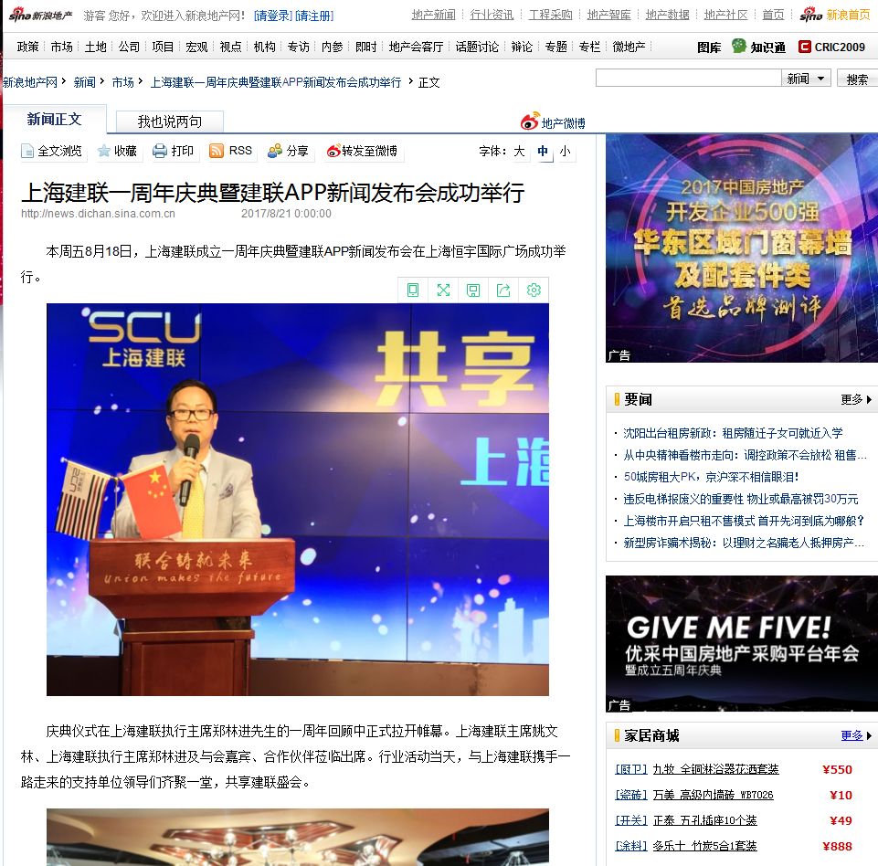 騰訊家居、新浪地產(chǎn)、搜狐焦點(diǎn)、搜狐網(wǎng)、鳳凰網(wǎng)、網(wǎng)易家居、中國(guó)建材網(wǎng)、中國(guó)貿(mào)易報(bào)、慧聰網(wǎng)、中國(guó)網(wǎng)、齊魯晚報(bào)、太平洋家居、上海熱線、財(cái)經(jīng)網(wǎng)、慧聰網(wǎng)、東方網(wǎng)、億房網(wǎng)、金融中國(guó)、證券之星、CCTV證券、中國(guó)發(fā)展門(mén)戶網(wǎng)。